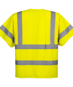 Kamizelka ostrzegawcza z krótkim rękawem zapinana na zamek oferuje podwójną ochronę zapewniającą dobrą widoczność i chłód Zastosowano lekką tkaninę i taśmę odblaskową HiVisTex. Zapinana z przodu na zamek błyskawiczny. Posiada również kieszeń na tablet, która pomieści urządzenia o rozmiarze do 10,5″ bez etui.