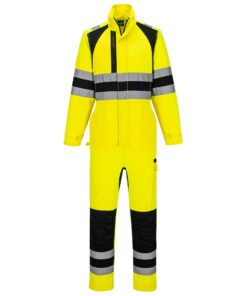 Ten kombinezon roboczy o wysokiej widoczności łączy w sobie zrównoważony rozwój i wydajność, wykonany z materiałów pochodzących z recyklingu z elastycznymi panelami dla zapewnienia większej elastyczności. Odporne na plamy wykończenie sprawia, że wygląda czysto, a jednocześnie spełnia normy bezpieczeństwa, zapewniając optymalną widoczność w warunkach słabego oświetlenia.