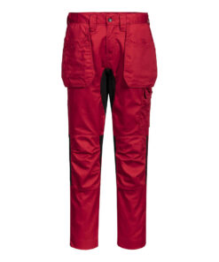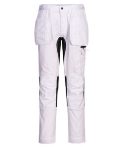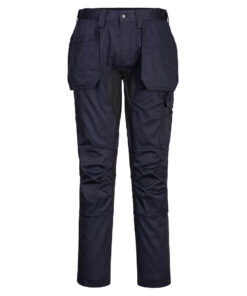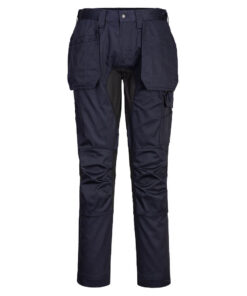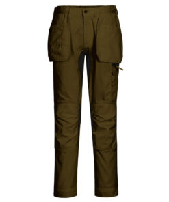 Wytrzymała tkanina z mieszanki bawełny i poliestru zapewnia zarówno wysoką wydajność jak i komfort. Elastyczne panele strech zapewniają swobodę ruchu. Posiadają wielofunkcyjne kieszenie kaburowe, ładowane od góry kieszenie na nakolanniki i łatwo dostępną wielostronną kieszeń na udzie do bezpiecznego przechowywania telefonu, kluczy i narzędzi.