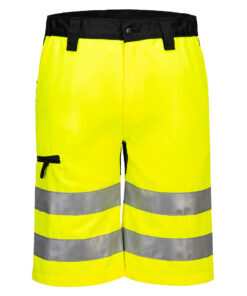Praktyczne szorty ostrzegawcze z właściwościami recyklingowymi, elastycznymi panelami i kieszeniami, zapewniają widoczność i wygodę. Wykonane z ekologicznych materiałów, zapewniających elastyczność i swobodę ruchów. Idealne na cieplejsze warunki, łączą w sobie zrównoważony rozwój z wydajnością, przeznaczone dla aktywnych środowisk pracy.