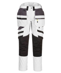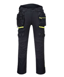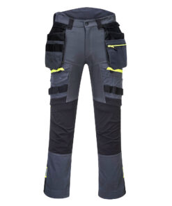 Spodnie ostrzegawcze z odpinanymi kaburami DX4 są ergonomicznie zaprojektowane i wykorzystują dynamiczne rozciągliwe tkaniny 4X, aby zapewnić maksymalny zakres ruchów podczas pracy. Spodnie posiadają wysoki stan w pasie z tyłu i są elastyczne z boku zapewniającą ochronę we wszystkich pozycjach roboczych. Wstępnie uformowane i ładowane od góry oraz regulowane kieszenie na nakolanniki, obszerne przednie kieszenie i wielofunkcyjne zapinane na zamek kieszenie na udach zapewniają bezpieczne przechowywanie. Potrójne szwy oferują najwyższą trwałość.