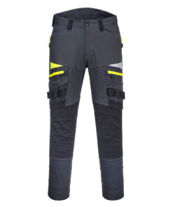 Spodnie robocze DX4 są ergonomicznie zaprojektowane i wykorzystują dynamiczne rozciągliwe tkaniny 4X, aby zapewnić maksymalny zakres ruchów podczas pracy. Spodnie posiadają wysoki stan w pasie z tyłu i są elastyczne z boku zapewniającą ochronę we wszystkich pozycjach roboczych. Wstępnie uformowane i ładowane od góry oraz regulowane kieszenie na nakolanniki, obszerne przednie kieszenie i wielofunkcyjne zapinane na zamek kieszenie na udach zapewniają bezpieczne przechowywanie. Potrójne szwy oferują najwyższą trwałość.