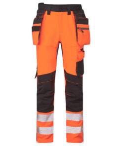 Spodnie ostrzegawcze z kieszeniami kaburowymi DX4 wykorzystują materiał rozciągliwy w 4 kierunkach, aby zapewnić maksymalny zakres ruchów podczas pracy. Spodnie posiadają wysoki stan z tyłu i są elastyczne po bokach zapewniając ochronę w każdej pozycji roboczej. Wstępnie uformowane nogawki, regulowane kieszenie na nakolanniki, duże kieszenie przednie, odpinana kieszeń kaburowa i wielofunkcyjne kieszenie na udach zapinane na zamek zapewniające bezpieczne przechowywanie. Potrójne szwy zapewniające maksymalną trwałość.