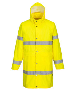 Zaprojektowany, aby zapewnić pełną ochronę przed cząsteczkami oraz o długości 100 cm, ten płaszcz gwarantuje, że będziesz widoczny, bezpieczny i suchy. Praktyczne funkcje obejmują klapę sztormową z ćwiekami i zamkiem błyskawicznym, chowany kaptur, duże przednie kieszenie zapewniające dużo miejsca do przechowywania oraz wentylowany karczek z tyłu i oczka zwiększające oddychalność.