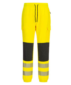 Ostrzegawcze spodnie jogger o dopasowaniu slim fit z rozciągliwością w 4 kierunkach tkaniną zapewniają niesamowity komfort i elastyczność. Wzmocnione panele na kolanach z subtelną artykulacją zapewniają swobodę ruchów, a prążkowany pas i elastyczne nogawki zapewniają uniwersalne dopasowanie. Dodatkowe funkcje obejmują zgrzewaną taśmę segmentową, wygięte kolana, klin w kroku i liczne kieszenie idealne do bezpiecznego przechowywania telefonów, długopisów i narzędzi.