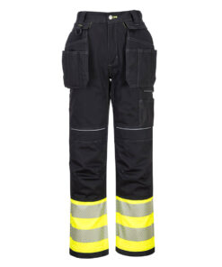 Innowacyjne spodnie odblaskowe klasy 1 z wielofunkcyjnymi kieszeniami kaburowymi, ładowanymi od góry kieszeniami na nakolanniki i łatwo dostępną wielostronną kieszenią na udzie do bezpiecznego przechowywania telefonu, kluczy i narzędzi. Wzmocnienie z tkaniny Oxford w kluczowych punktach przetarcia i potrójne szwy zapewniają maksymalną trwałość.