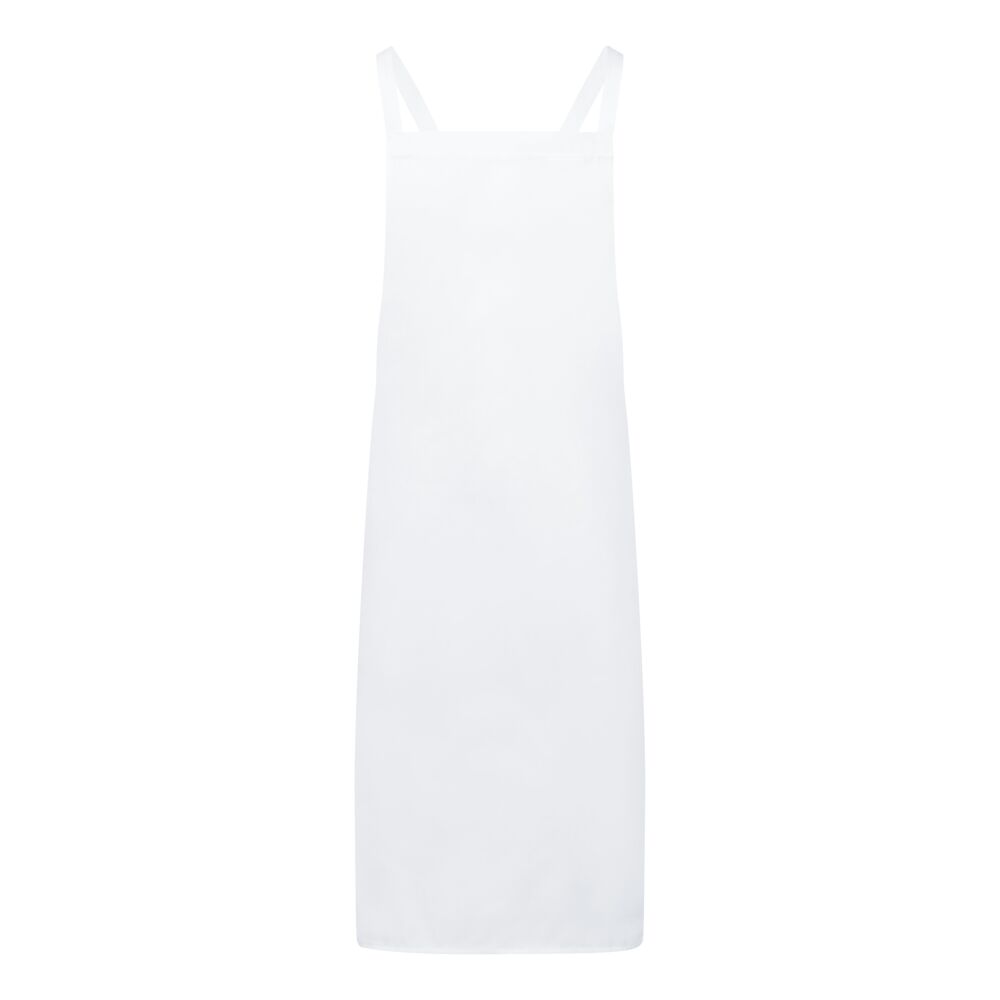 Ten fartuch w nowoczesnym kroju zapina się na ramieniu i krzyżuje, aby zawiązać z tyłu, nadając współczesny wygląd klasycznemu produktowi. Wykonano z wytrzymałej tkaniny Kingsmill, z wykończeniem Texpel™ SOS, odpornym na plamy, które odpycha oraz na olej, wodę i brud. Jest idealny do pracy w kuchni.