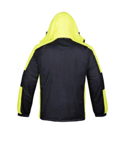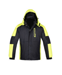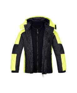Kurtka Aspen 3 w 1 w kolorze czarnym z żółtymi wstawkami. Możliwość noszenia na 3 sposoby: kurtka wraz z polarową podpinką, lekka kurtka bez podpinki, podpinka- bluza polarowa. Zamek główny przykryty plisą zapinaną na zatrzaski oraz rzep. Kieszenie boczne i piersiowa zapinane na zamek. Odpinany kaptur z regulacją obwodu za pomocą stoppera. W dole rękawów dodatkowa regulacja obwodu na rzep, zapewniając lepsze dopasowanie. Produkt spełnia wymogi normy PN-EN ISO 13688:2013. Pakowanie: 1/10 karton.
