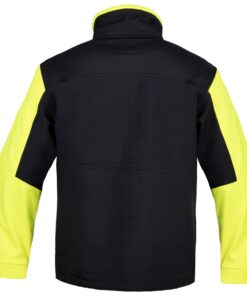 Kurtka softshell (100% poliester) w kolorze czarnym z żółtymi elementami. 3 kieszenie zapinane na suwak. Kieszeń piersiowa zapinana na suwak w kontrastowym kolorze, kieszenie boczne zapiane na suwak ukryte pod plisą. Obwód rękawów regulowany na rzep, zapewniając lepsze dopasowanie. Produkt spełnia wymogi normy PN-EN ISO 13688:2013. Pakowanie: 1/10 karton.