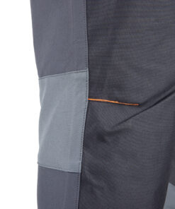 Spodnie wykonane z elastycznej tkaniny 4 way stretch o składzie 92% poliester i 8% elastan, o gramaturze 190g/m2. Wzmocnienia na kolanach z tkaniny Oxford 100% poliester. Guma wszyta w boczne części pasów zapewnia lepsze dopasowanie rozmiaru. Kieszenie boczne zapinane na suwak w kontrastowym pomarańczowym kolorze. Kieszeń w tyle zapinana na zamek w kolorze czarnym. Produkt spełnia wymogi normy EN ISO 13688:2014. Pakowanie: 1/20 karton.