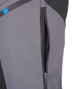 Spodnie wykonane z tkaniny 4 way stretch o składzie 100% poliester i gramaturze 220g/m2 W kolorze szarym z ciemnymi wstawkami na kolanach oraz w tyle. Kieszenie boczne i kieszenie na udach zapinane na suwak. Wentylacja w szwie bocznym, regulowany obwód nogawek, profilowane kolana. Produkt spełnia wymogi normy PN-EN ISO 13688:2013