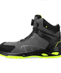 Trzewiki bezpieczne NEXO HIGH S3S z systemem sznurowania SPINPRO. Wykonane ze skóry nubukowej, ze stalowym podnoskiem ochronnym oraz kevlarową wkładką antyprzebiciową. Podeszwa z dwugęstościowego poliuretanu PU/PU, antyelektrostatyczna, antypoślizgowa i olejoodporna. Absorpcja energii w części piętowej. Komfortowa, miękka, elastyczna wkładka z pianki z włókien organicznych o wysokich właściwościach absorbcji wstrząsów, oddychających i przeciwpotnych. Wyściółka z materiału o właściwościach higroskopijnych i wentylujących. Wysoka cholewka zapewnia dodatkową stabilizację i ochronę kostki. Wzmocnienie czubków zapobiega przetarciom i uszkodzeniom mechanicznym. Kategoria S3S SR. Spełnia wymagania normy EN ISO 20345:2022. Dostępne w rozmiarach: 39 – 47. Pakowanie: 1/10 karton.